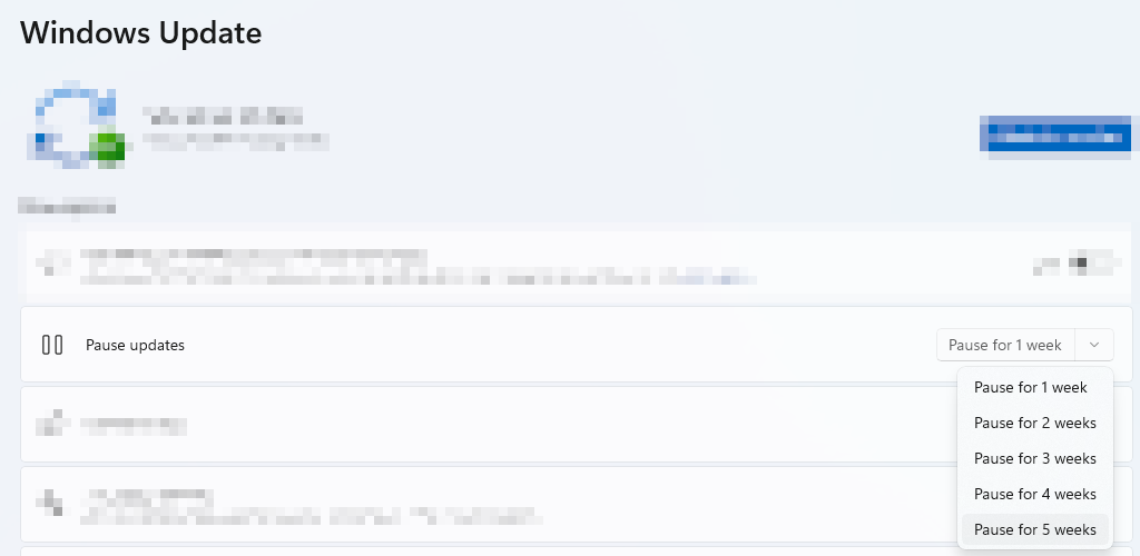 Click Pause for 5 weeks or at least 1 week. When you are finished using the computer for the day, please update your Windows.
