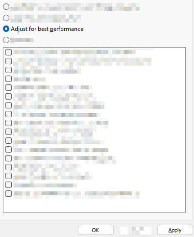 Click Adjust for best performance, and then click Ok or Apply.