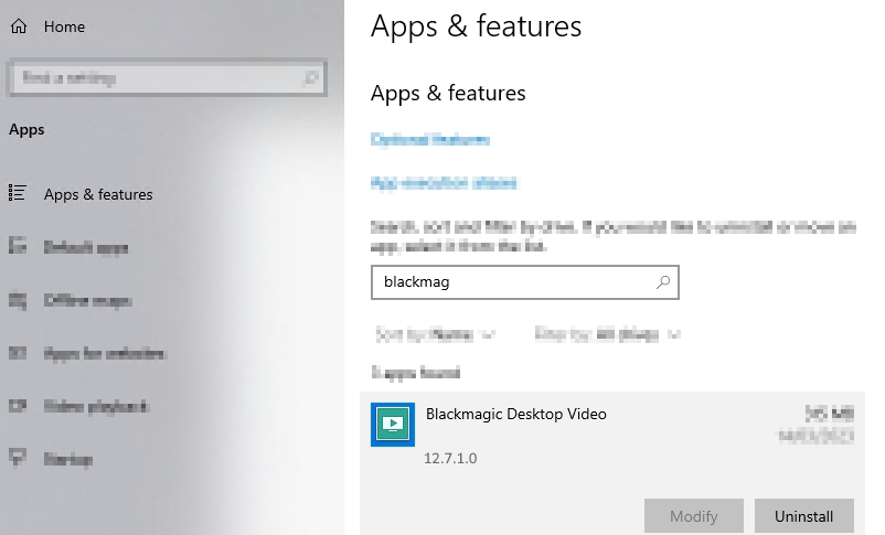 - Find the Blackmagic Desktop Video, click on it, and check the version. We recommend version 12.7.1. If older, follow the previous steps to install the latest version.