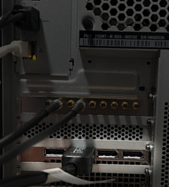 Blackmagic DIN cables with small plugs (see picture below) can be damaged if you are not careful when connecting. By default, the Blackmagic card has N+1 SDI connectors. 0 = reference, 1 = input 1, 2 = copy input to output, ...